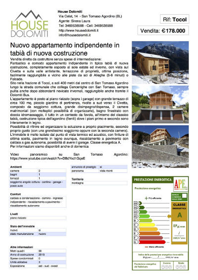 La scheda dell'immobile può essere personalizzata e spedita via mail.